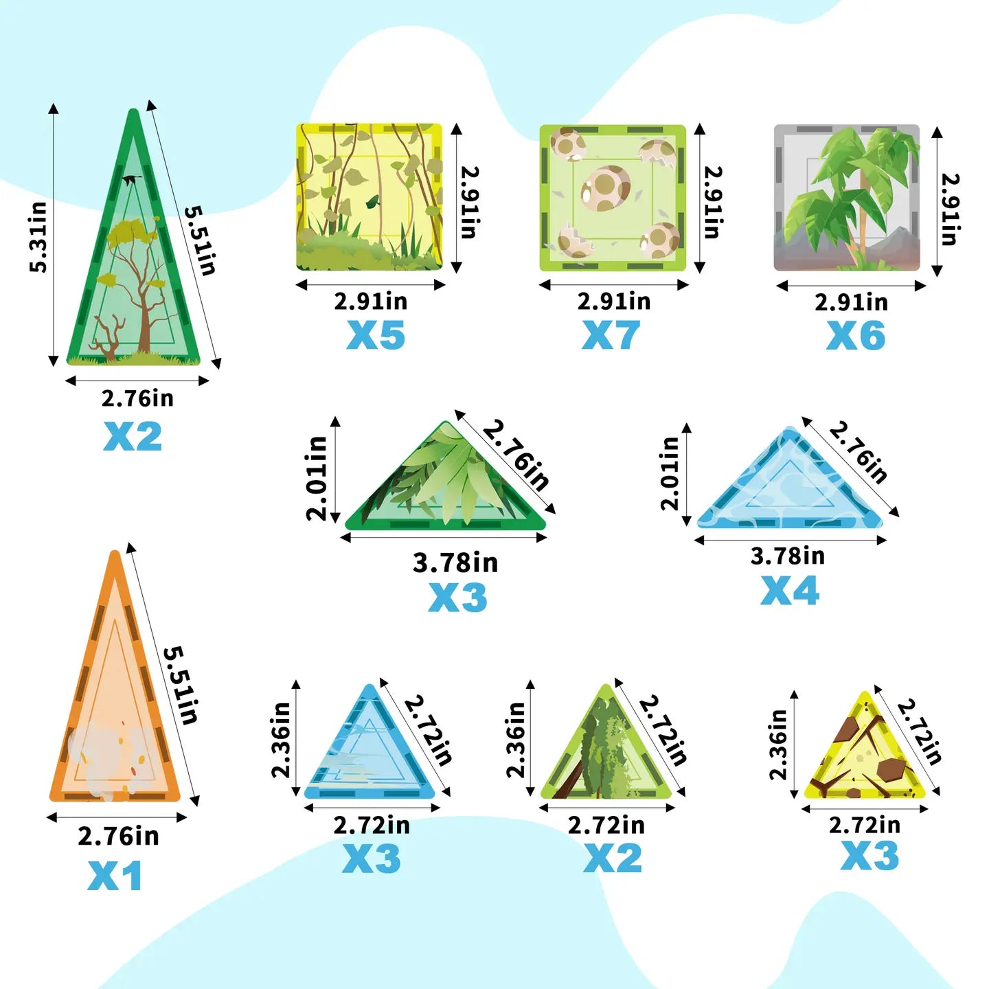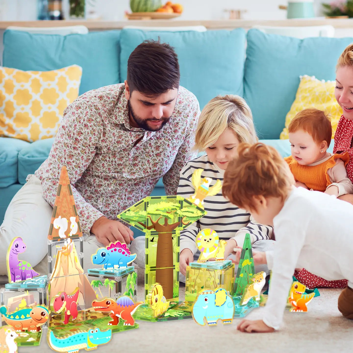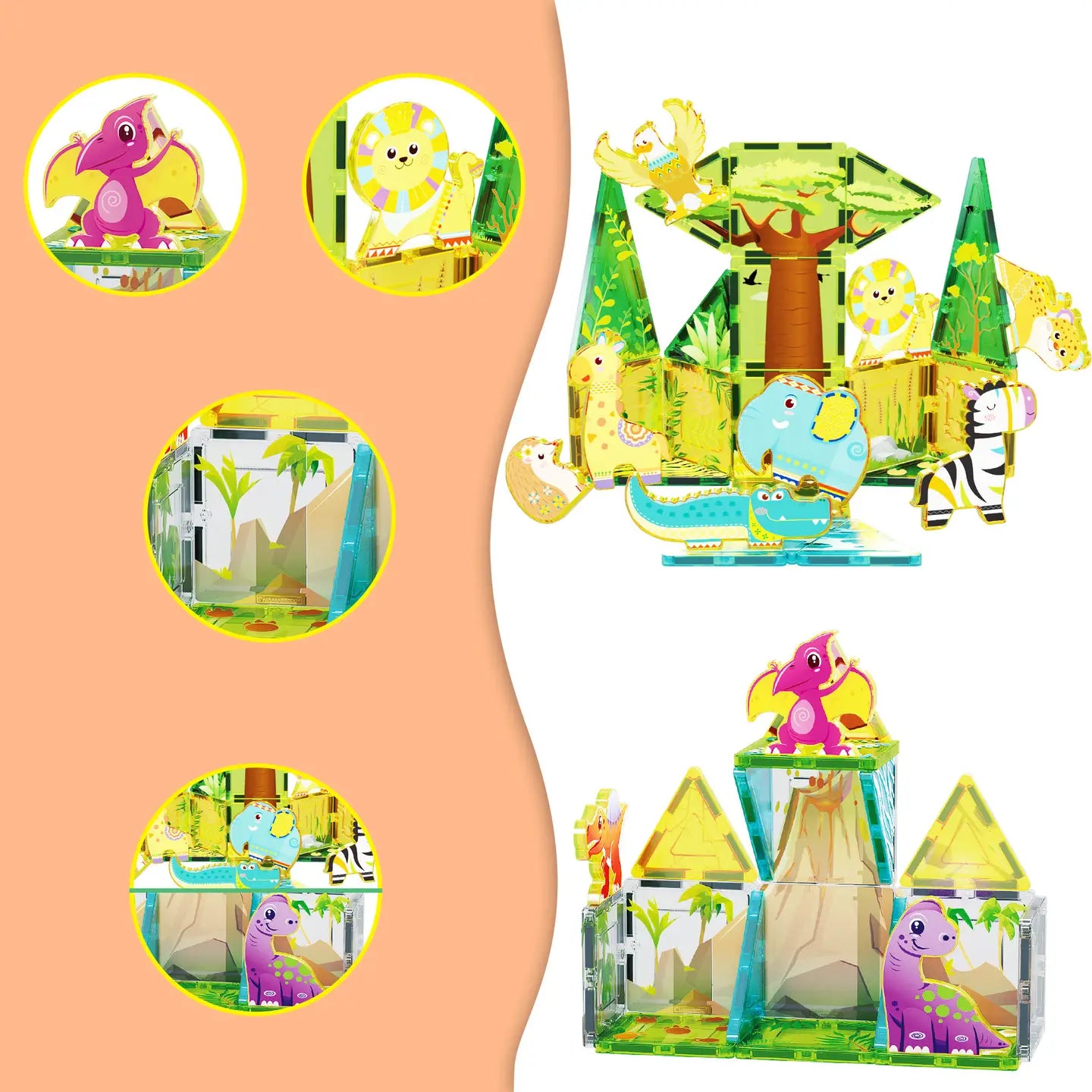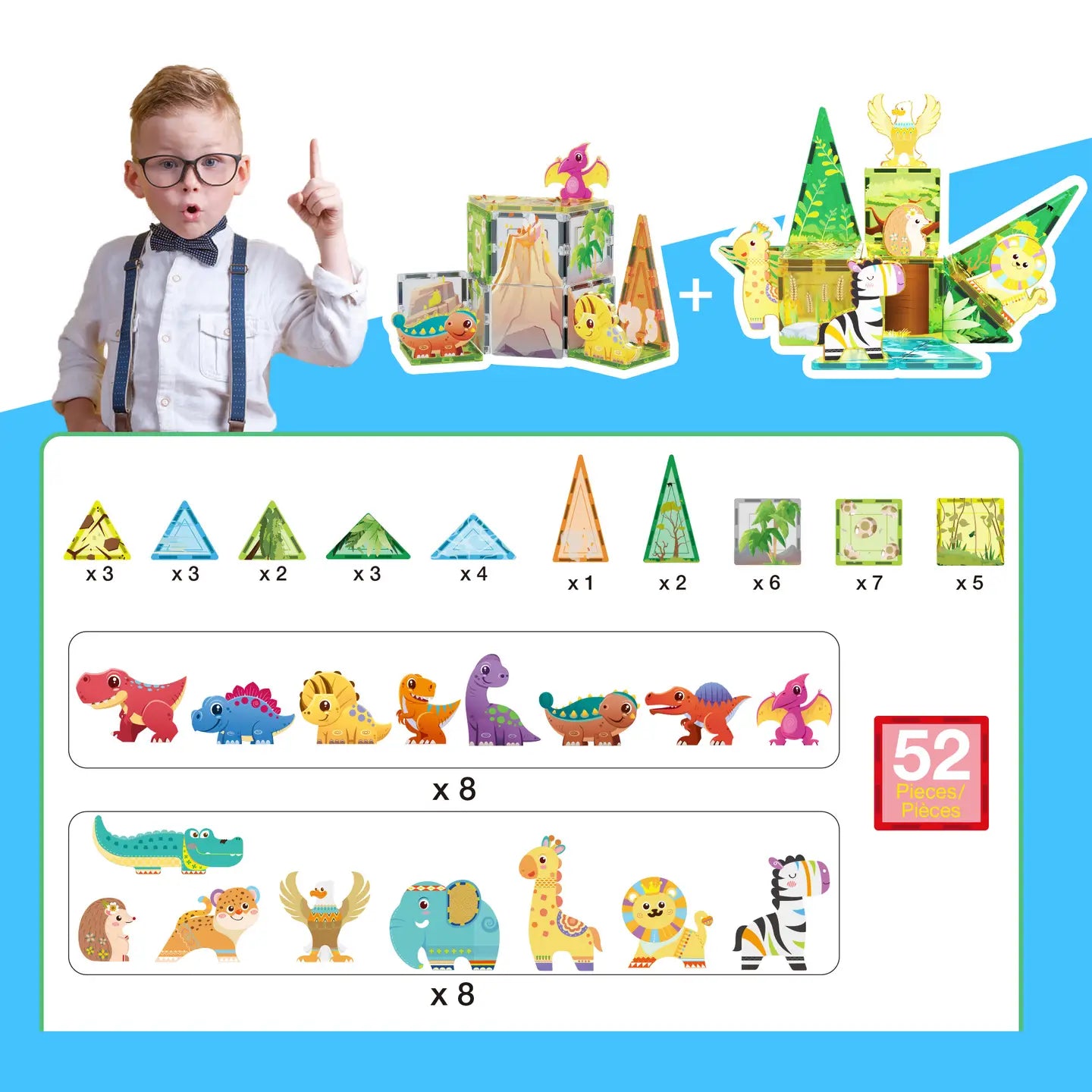 52 Pieces Dinosaur & Safari Magnetic Building Tiles Set