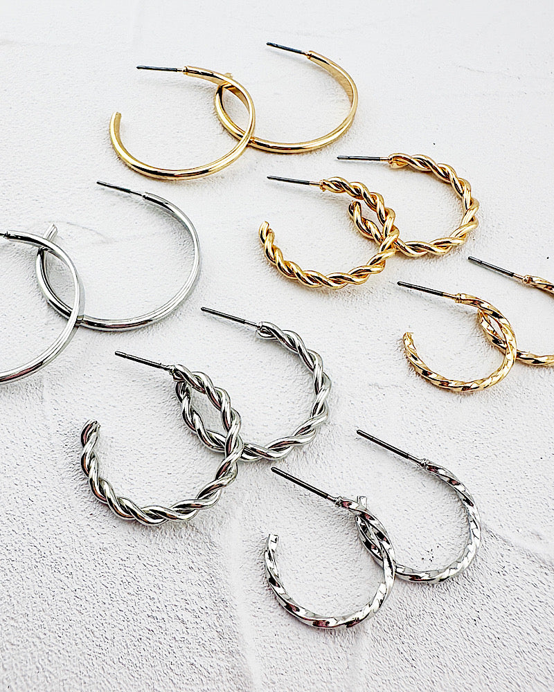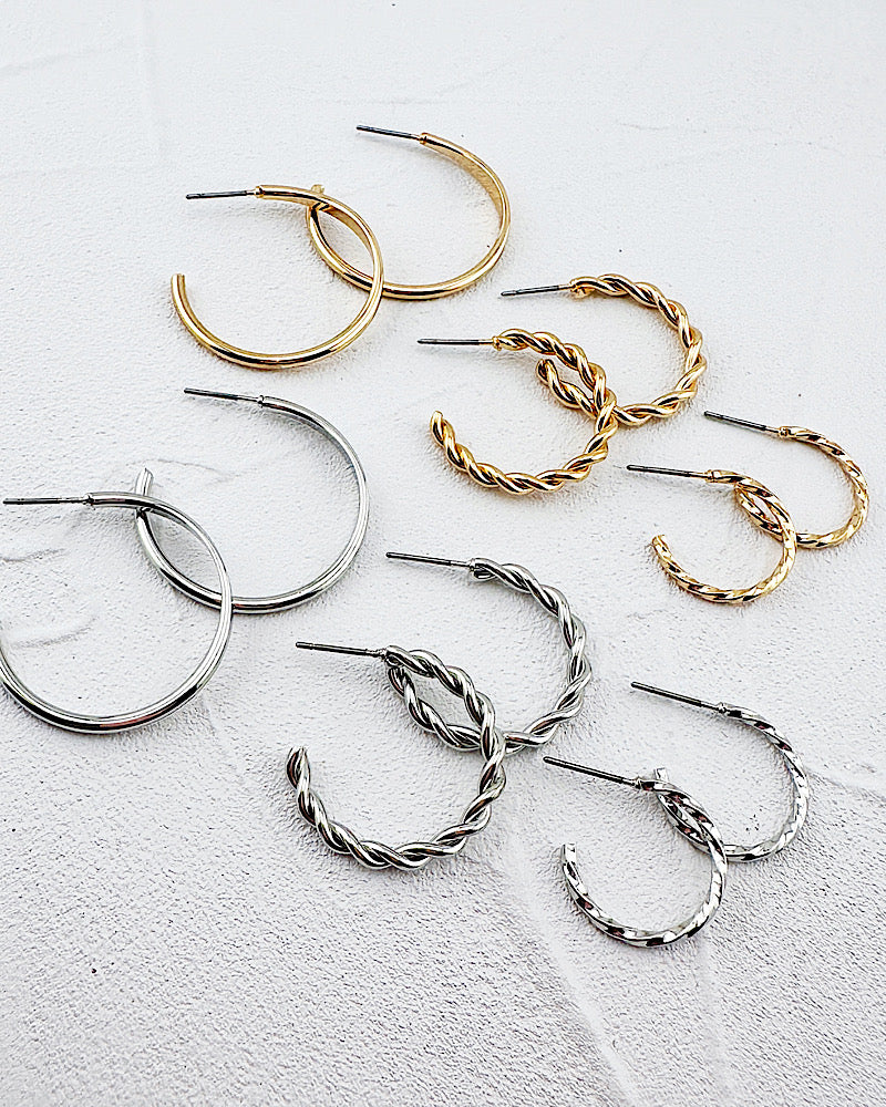 Our hoop trios are an essential to any wardrobe. The perfect size to accentuate any face shape. Lightweight & easy to wear. Available in gold & silver. Sizes range from 5/8" to 1-1/8"