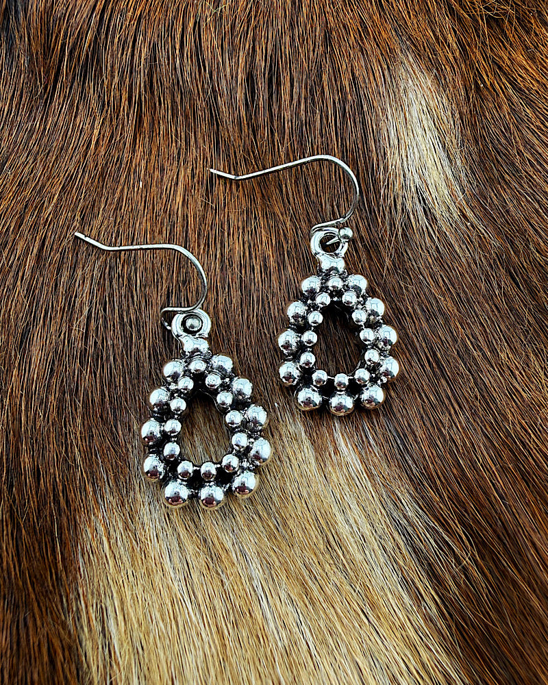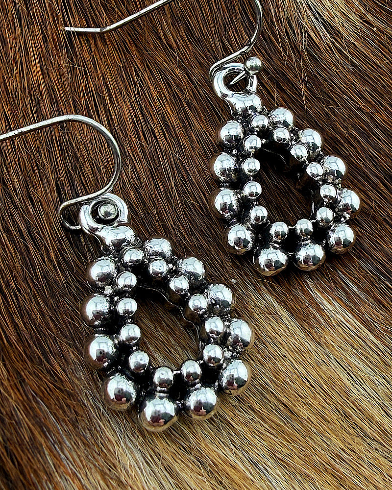 Not your average everyday hoops. These hoops have a worn silver finish & checkered inlay. Worn silver finish. Post style, 1-7/8" diameter.