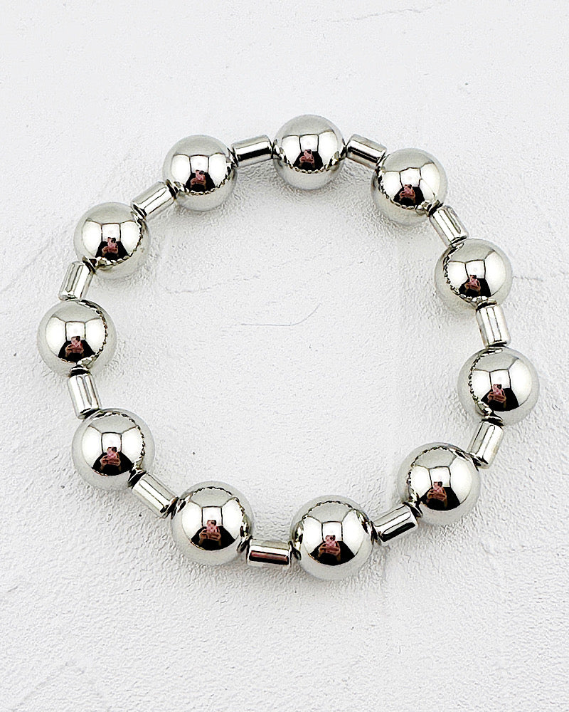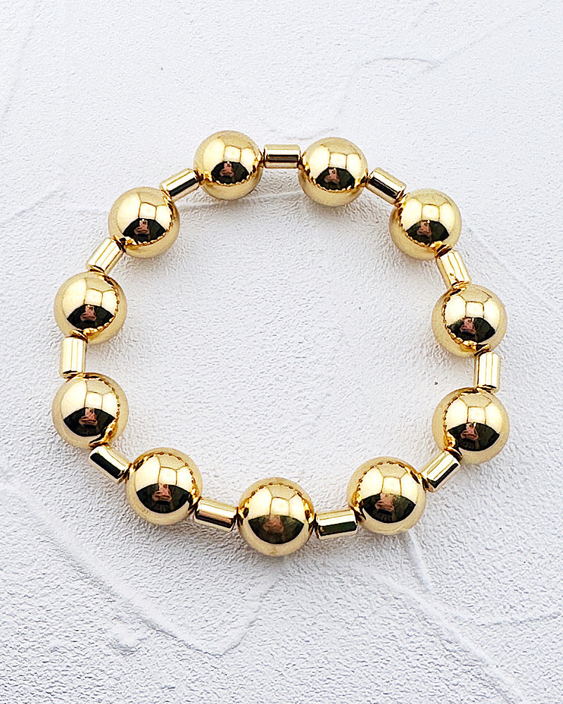 The Mickie bracelet offers comfort & shine in one chic piece. A versatile bracelet adding instant polish to any outfit. Stretchy, available in gold & silver. 10mm ball beads.
