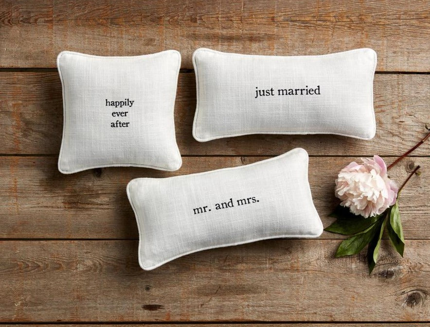 Cotton pillow with blanket stitch flange. Zipper closure.