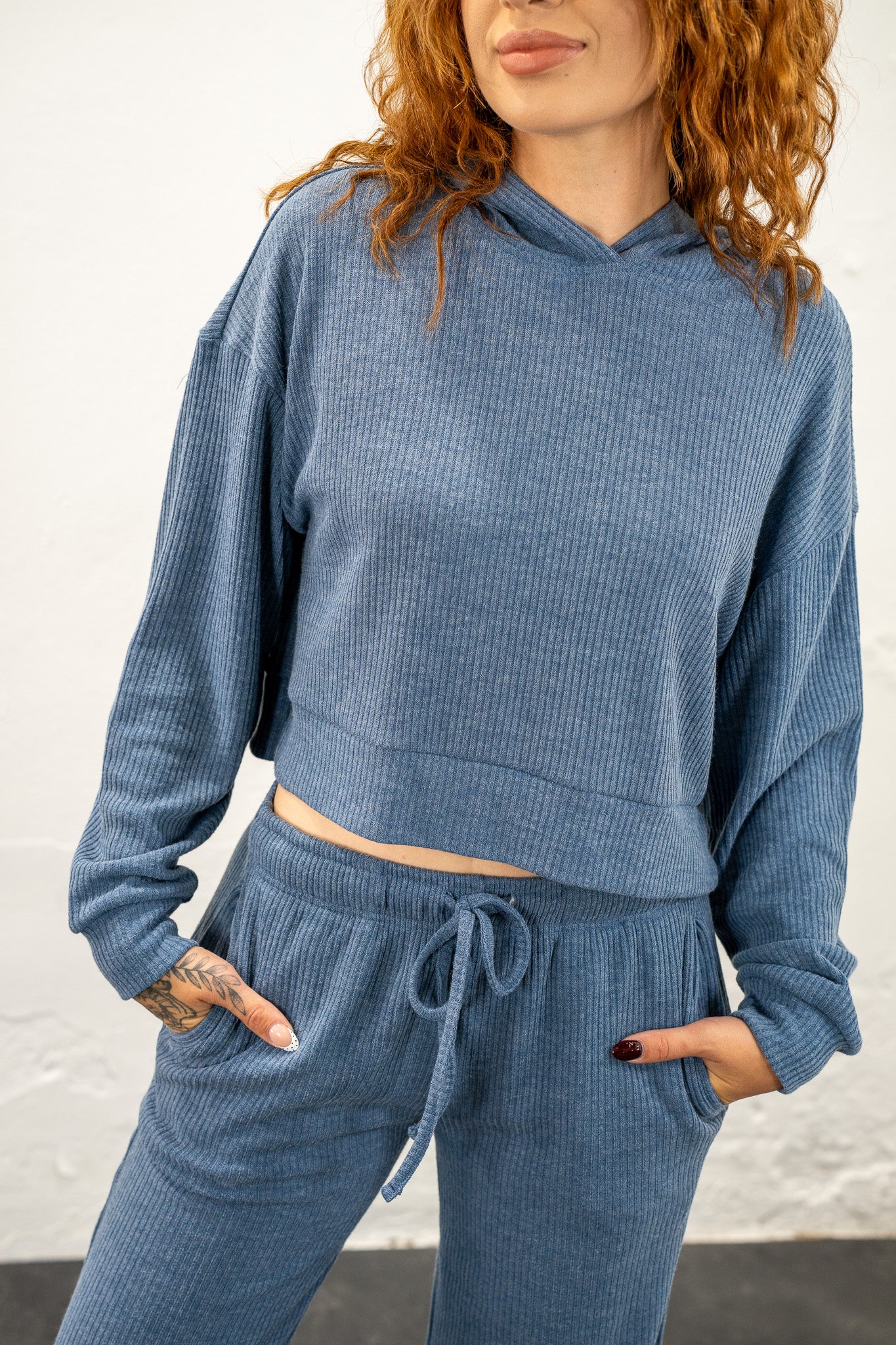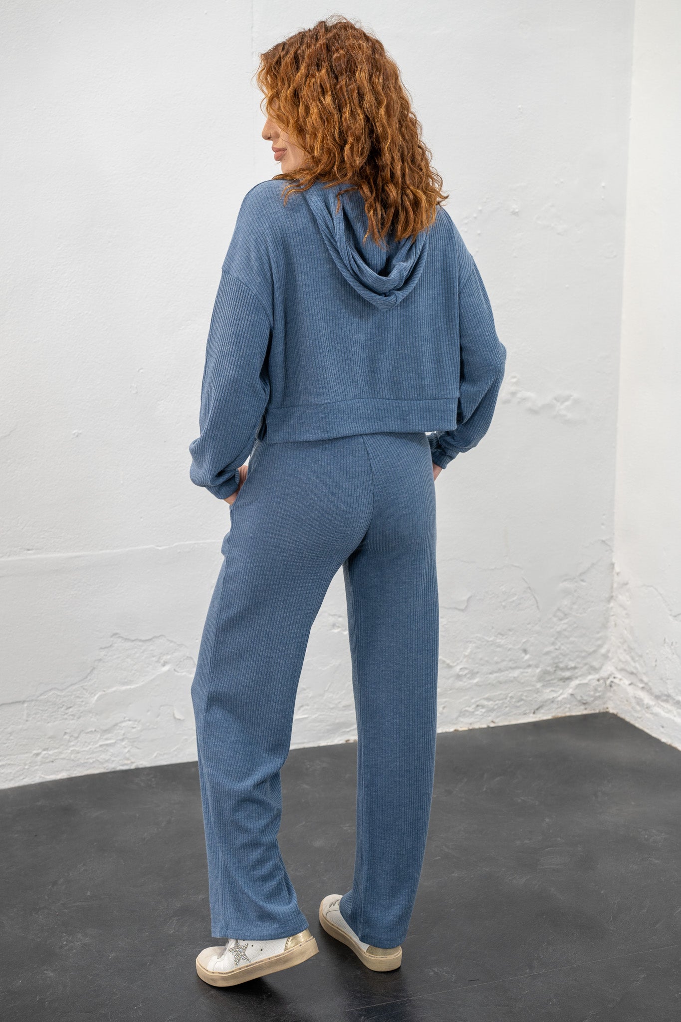 Set includes ribbed top and ribbed lounge pants which include a drawstring waistband and pockets!