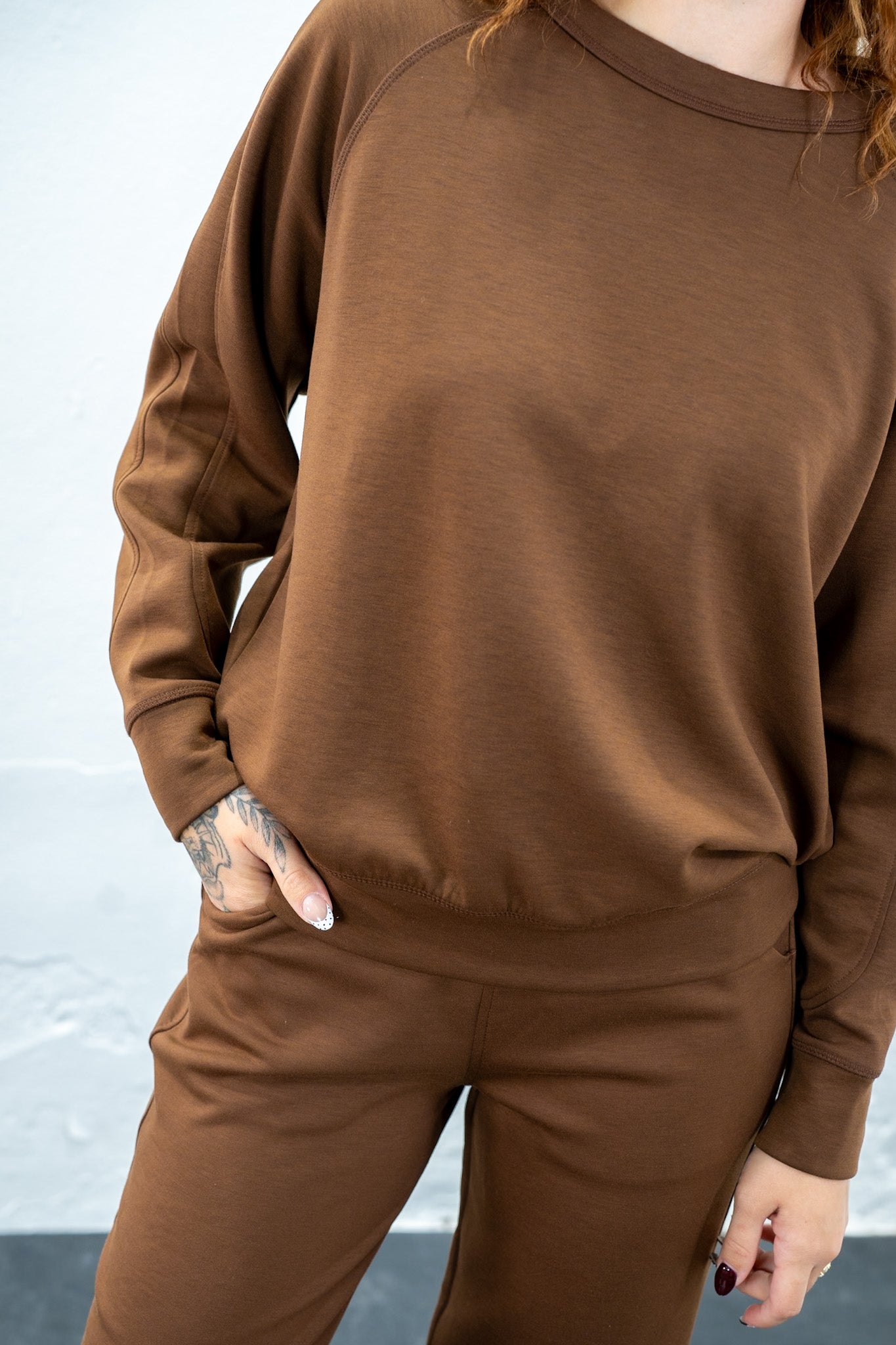 Set includes long sleeve scuba sweatshirt and scuba lounge pants.