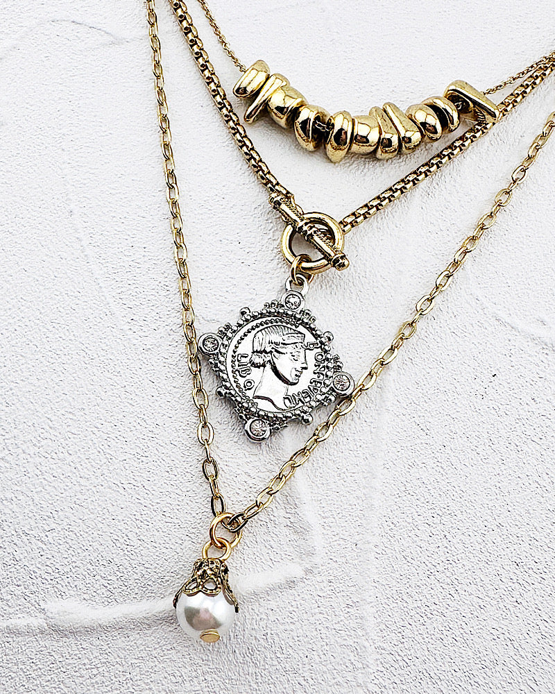 We've made layering a breeze with our Ophelia necklace. Three layers of vintage charm featuring antique gold finishes, a vintage coin pendant & pearl accent. Adjustable from 16-19"