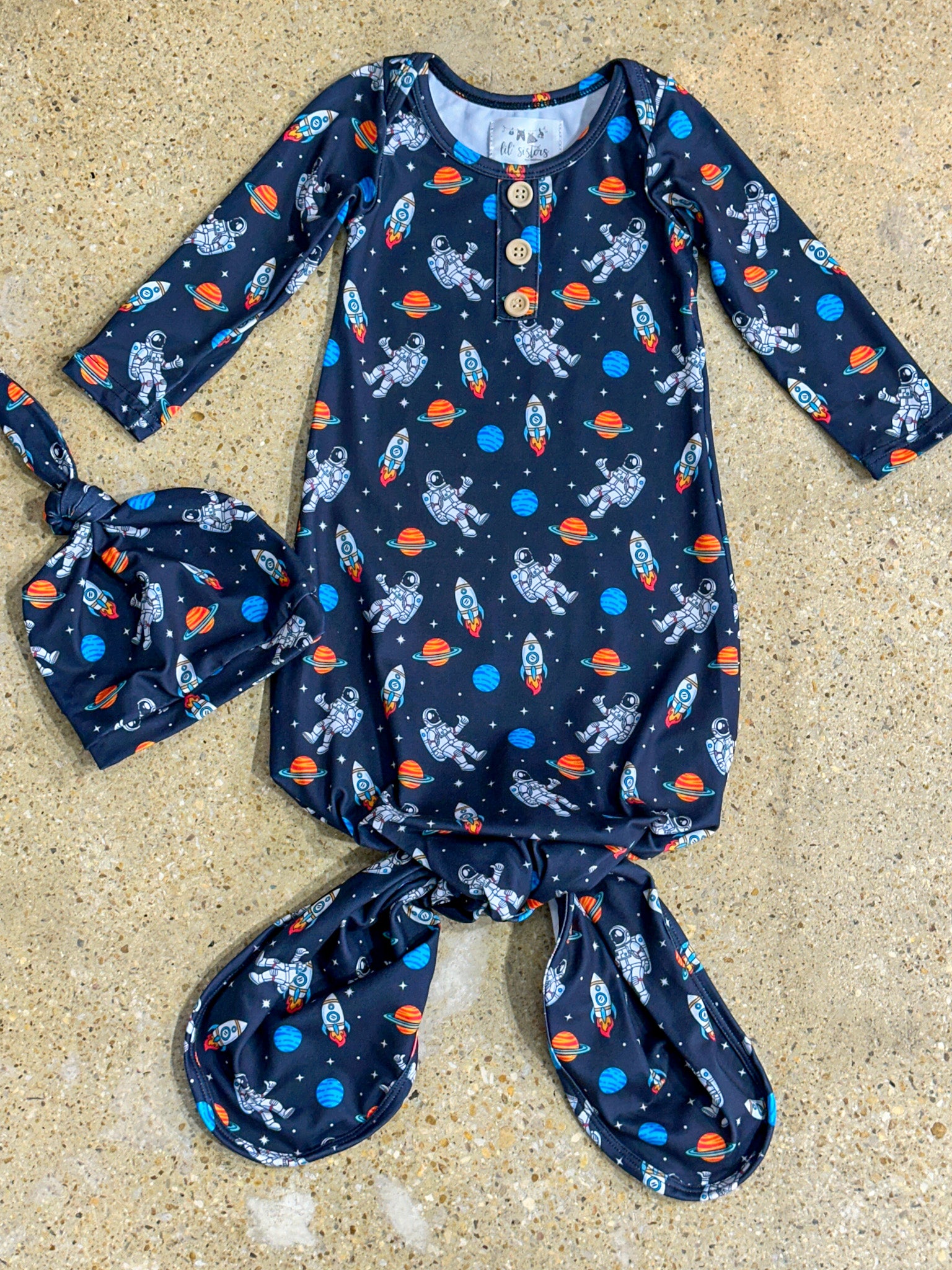 This print is all about outer space and unique vibes! Designed for little dreamers with playful space prints and out-of-this-world details!