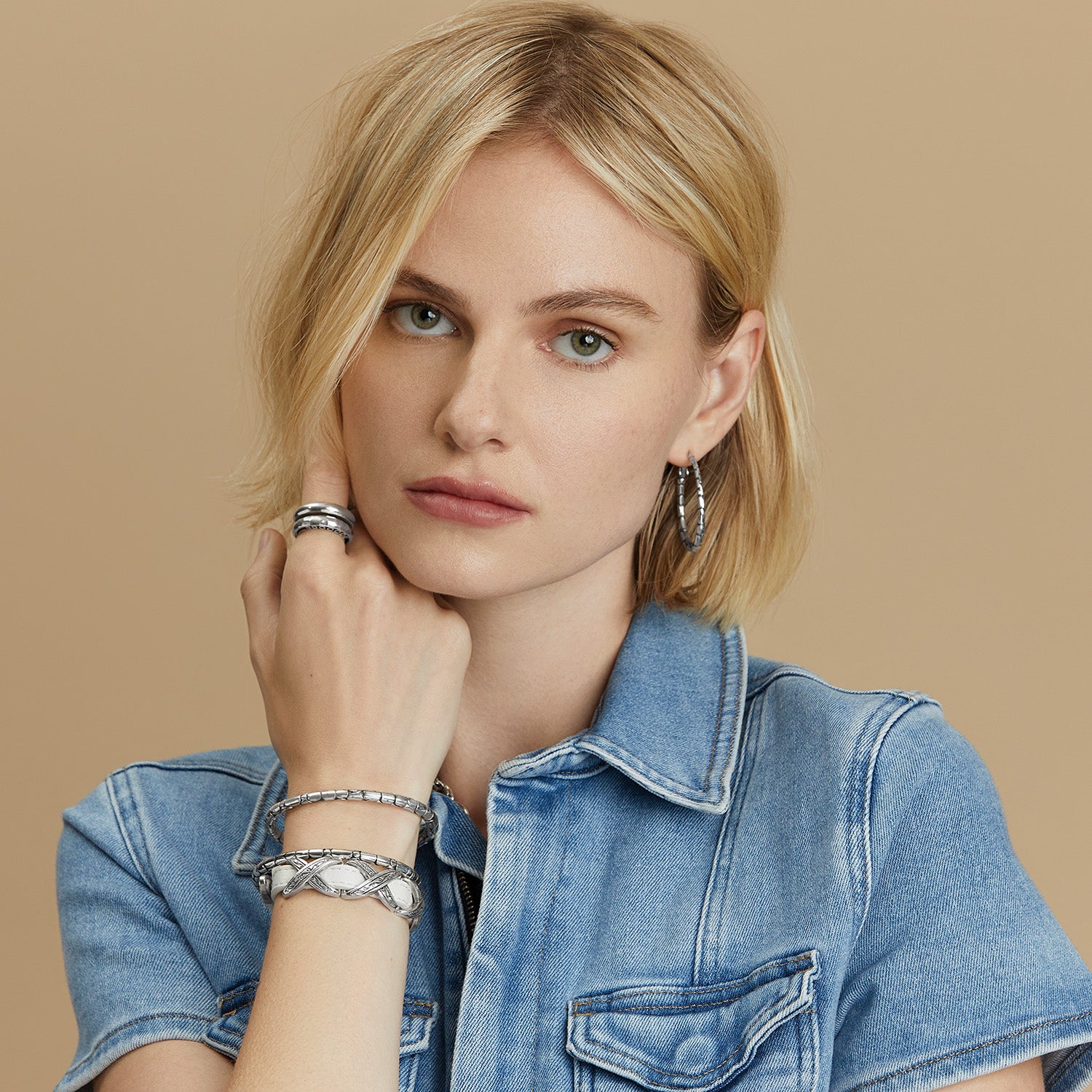 Our pebble pattern lends an earthy, organic feel to these classic hoops.