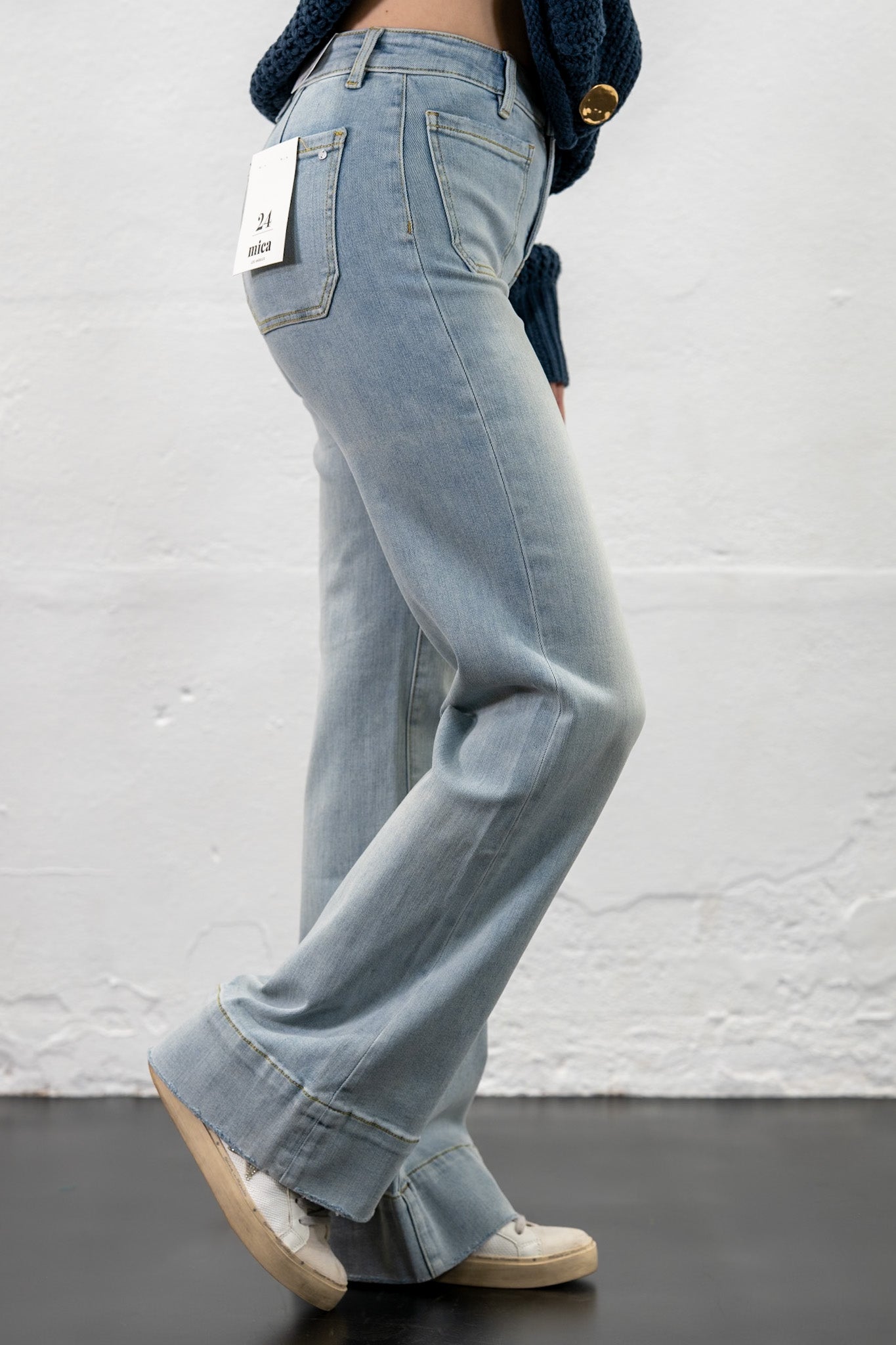 High rise wide leg w/patch pocket