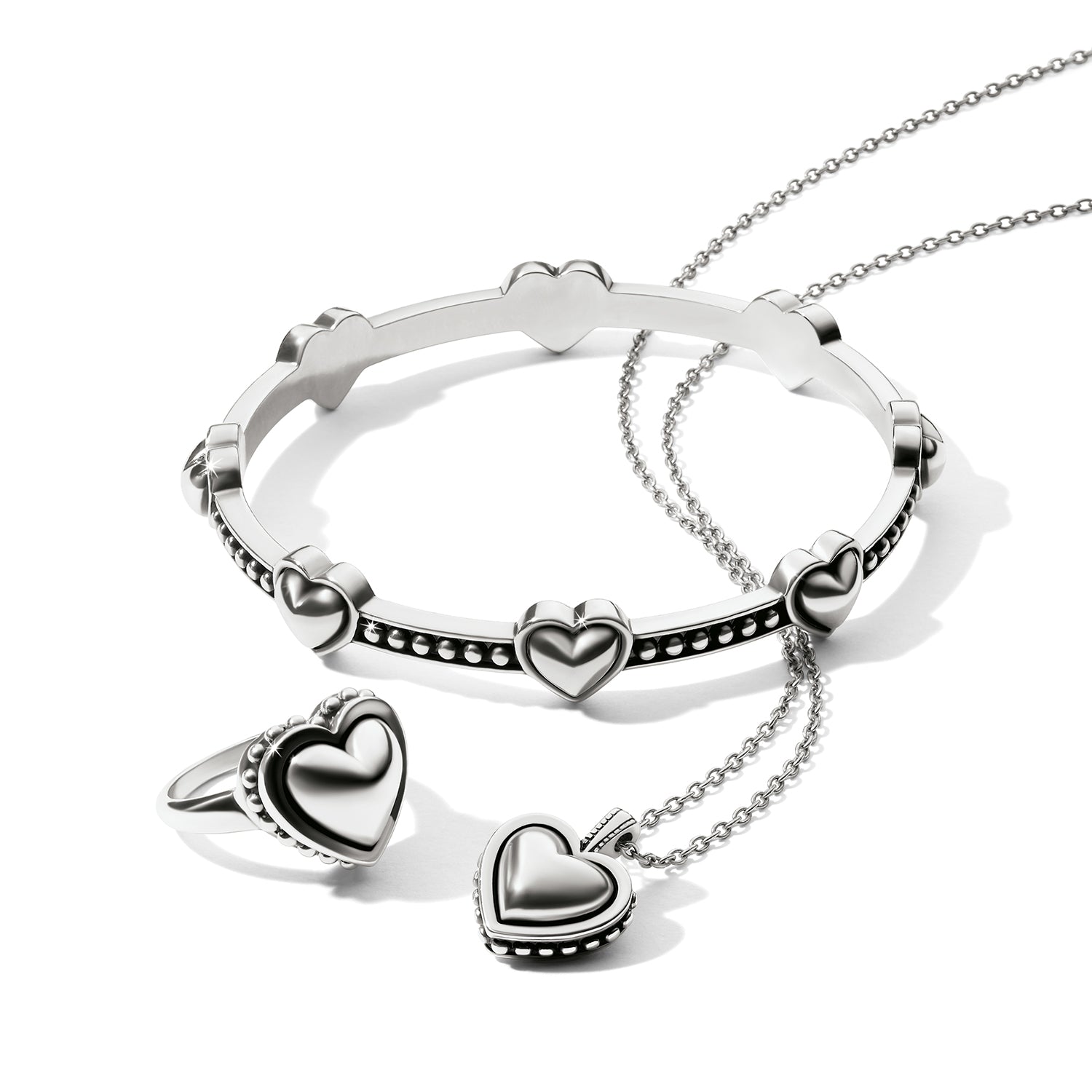 Whenever you want to exude urban elegance, reach for this silver studded heart necklace which channels the limelight of Hollywood and New York City in the 1980s and early 90s - a truly modern classic with the look of silversmithing.