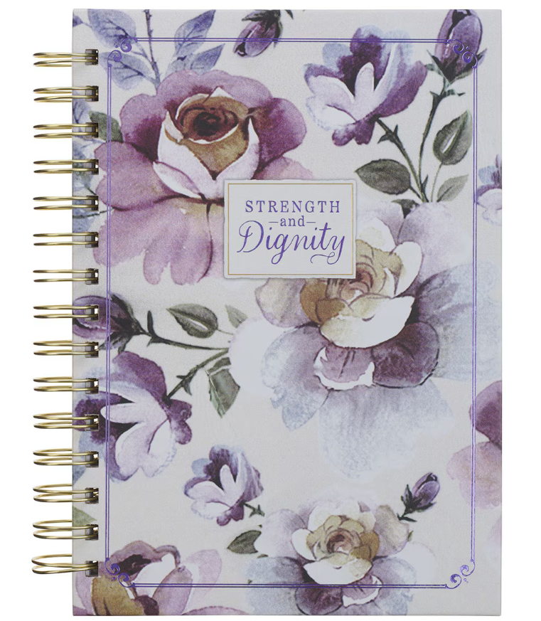 Celebrate the grace and strength of a woman who has embodied the Proverbs 31:25 woman with the Strength and Dignity Purple Rose Spiral Journal. The Proverbs 31 woman is not perfect but leans on her faith to guide her decisions, shows kindness in her interactions, and courageously approaches life's challenges. Her strength and dignity reflect her trust in God, and this makes her an inspiration in any context.