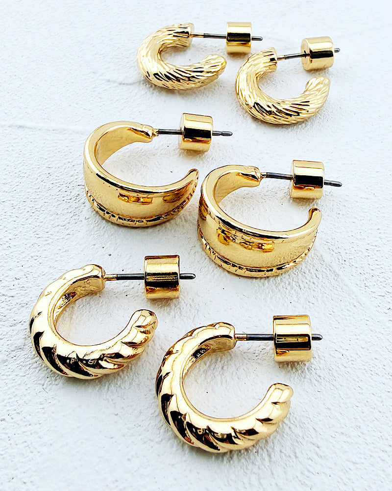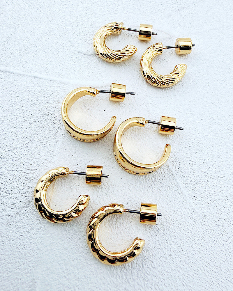 Transform all of your everyday looks with our Quincy trio. Featuring 3 unique tiny golden hoops, all with a unique quality. Sizes range from 1/2" to 5/8"