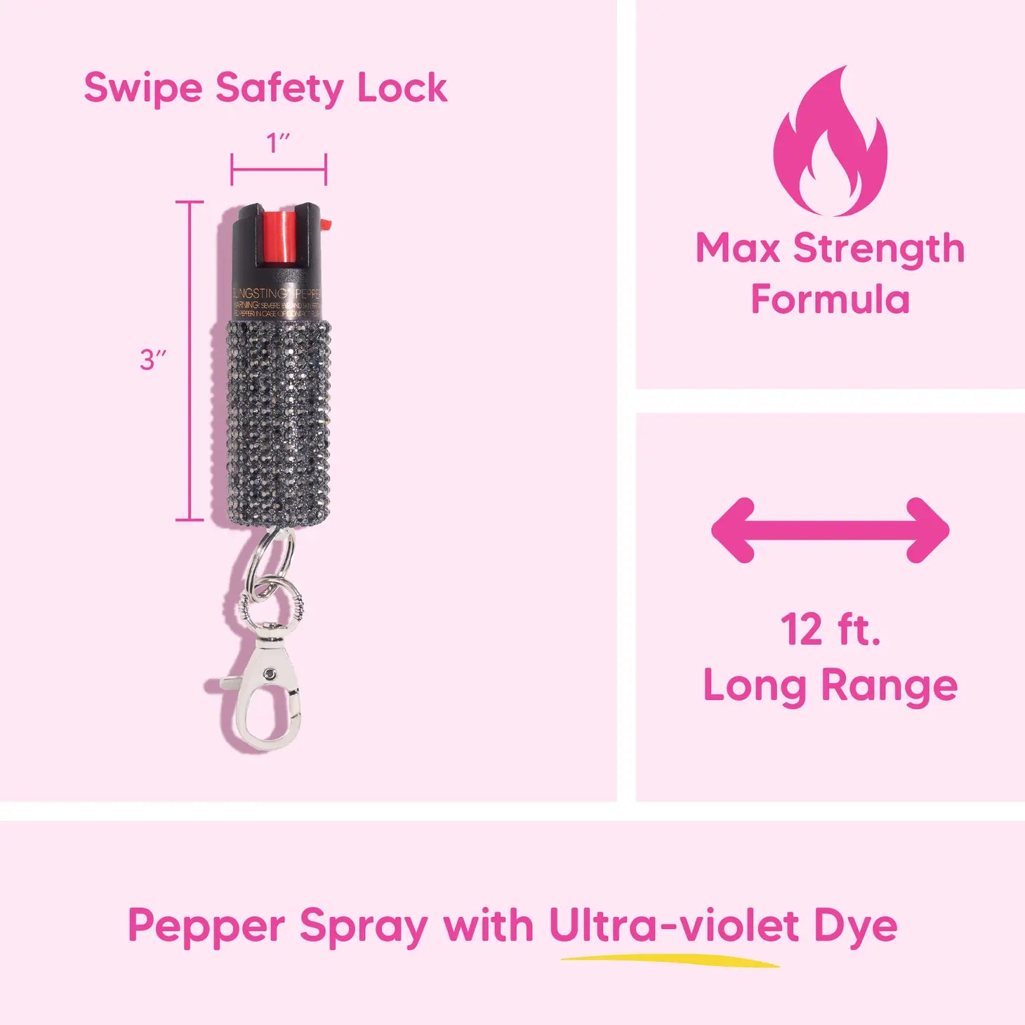 Easy to unlock and activate with a single swiping movement and quick press of the activator, the canister is intuitively easy to aim and fire in high-stress situations. The steady stream spray pattern reduces the chance of wind blowback to ensure that you are able to safely protect yourself from a comfortable distance of up to 12 feet. Girl, you got this.