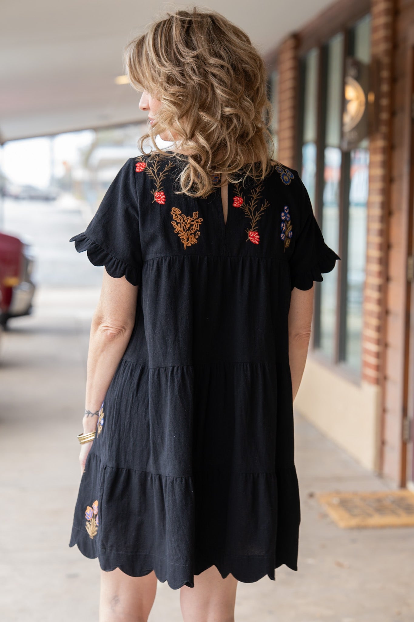 Rosa Black Embroidery Tiered Dress
