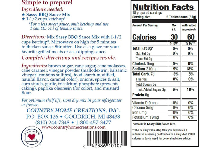 Meet the best sweet BBQ sauce in the country. Mix with ketchup for a sweet sauce or use tomato sauce for a less sweet version. Turn up the heat to your liking by adding your favorite hot sauce. Sassy BBQ Sauce Mix is delicious with: