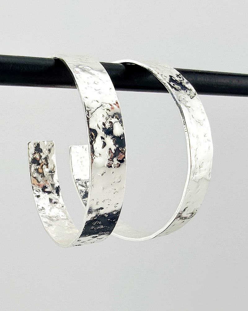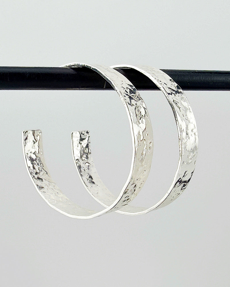 Your new everyday lightweight hoops. Serena is a classic mid-size hoop with a hammered silver finish. Post style, 1-1/2" diameter.