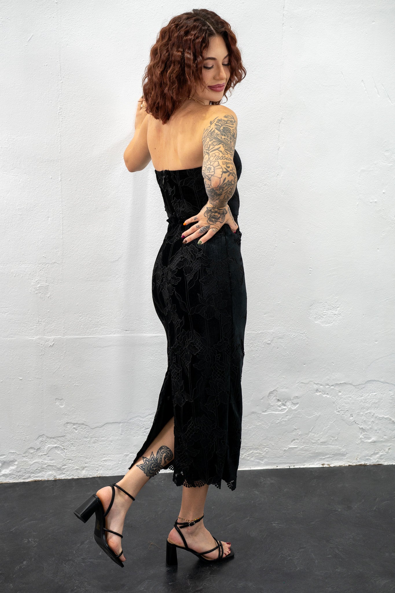 Figure-flattering silhouette and subtle floral embossing creates a dreamy, dark romantic feel!