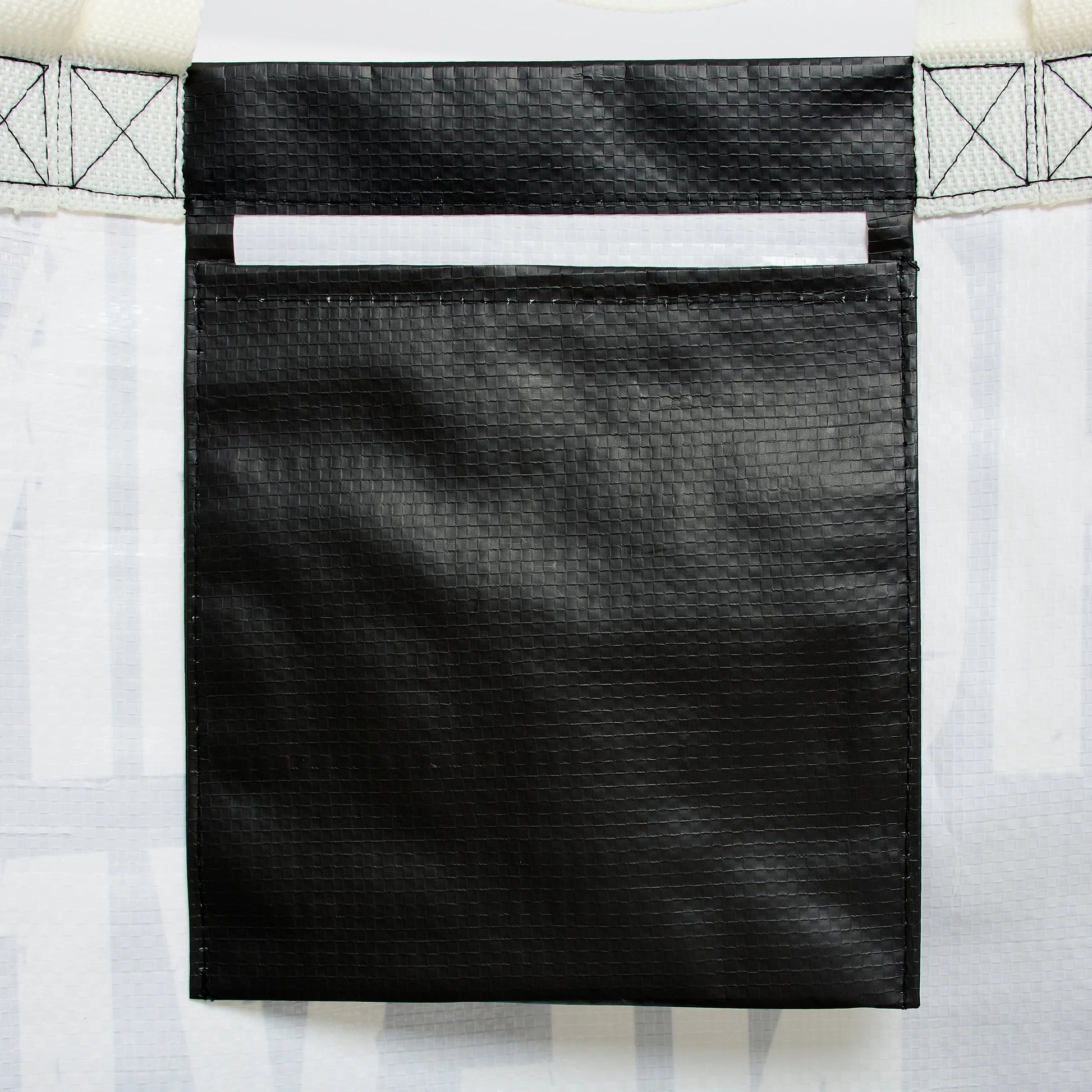 A double-sided shopping tote displaying a fun shopping-themed sentiment in a classic box sign style that reads "Shopping Is Never A Bad Idea." Shopping tote includes both hand and shoulder straps in white nylon and a convenient inside pocket. Our Shopping Never Bad Idea shopping tote is made from eco-friendly post-consumer material and folds flat for easy storage.