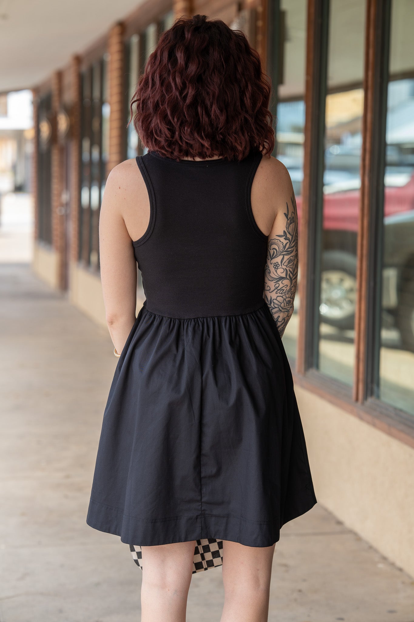 Top of dress is made for soft stretchy knit fabric while the skirt portion is lightweight woven! Model is wearing a small.
