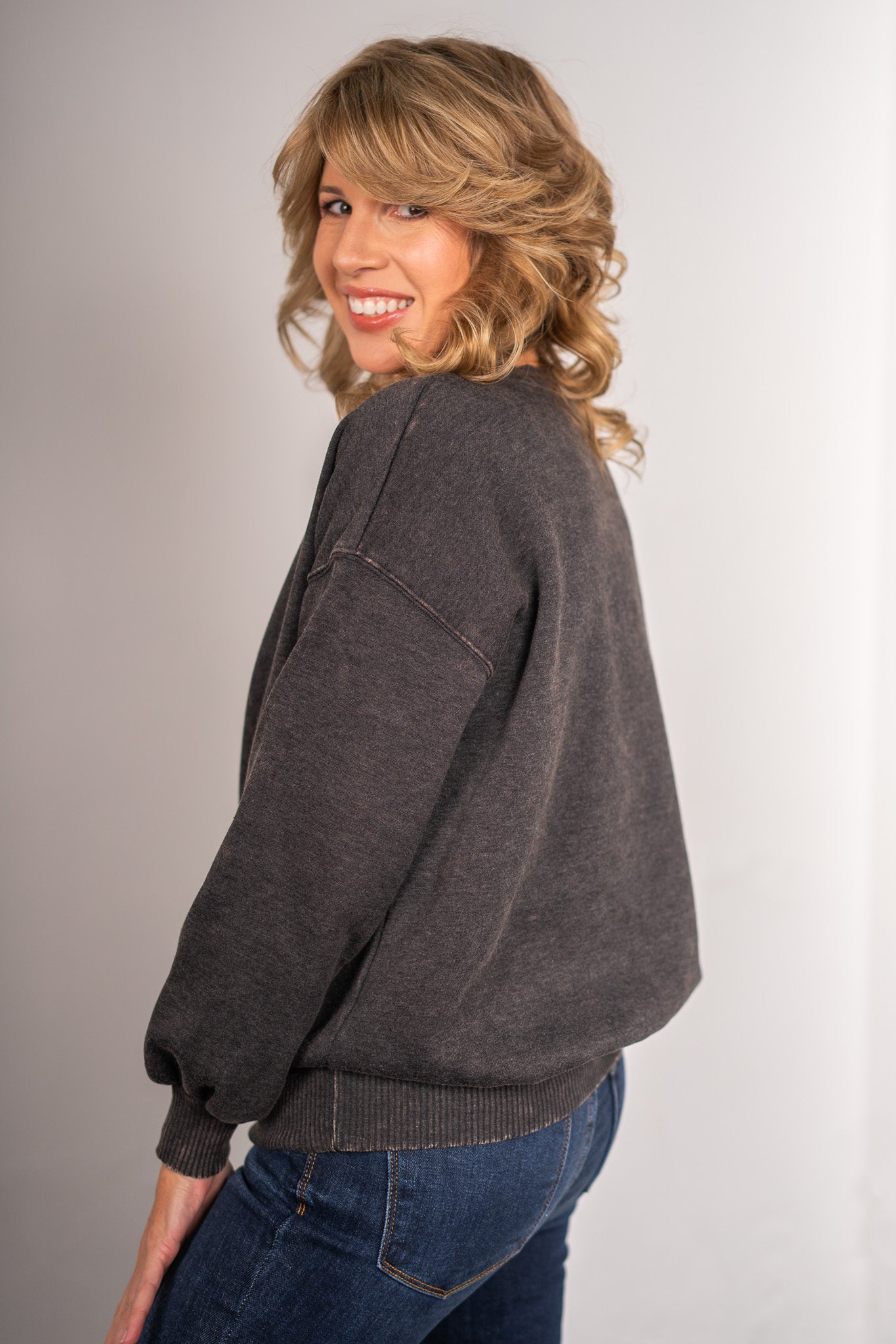 Enjoy the moments and slow mornings.. our new acid wash pullover will keep you comfortable and ready for the day.