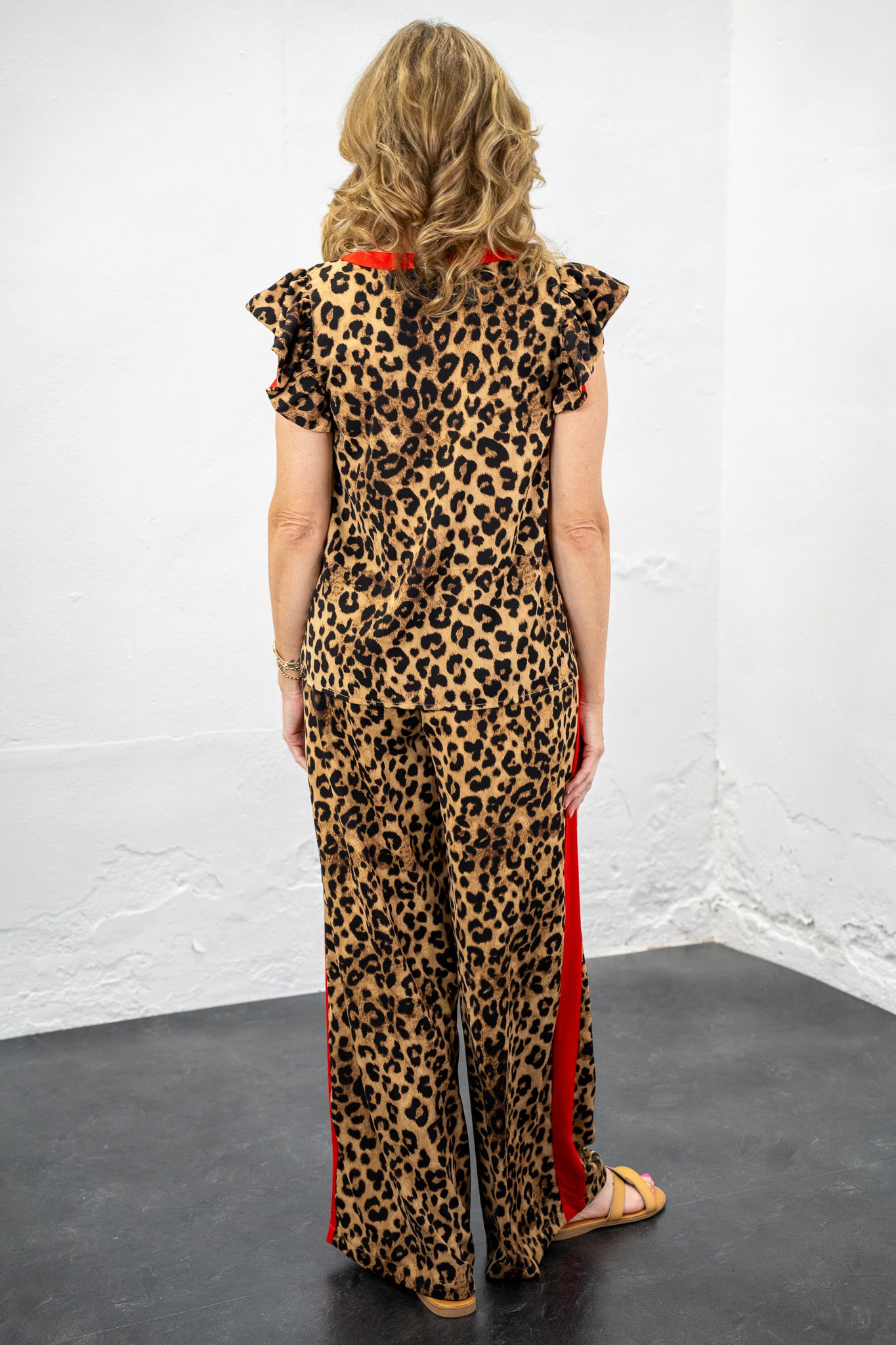 This set includes the top with flutter sleeves and the easy-fitting pants with a stretchy waistband!