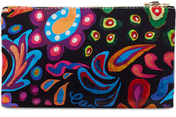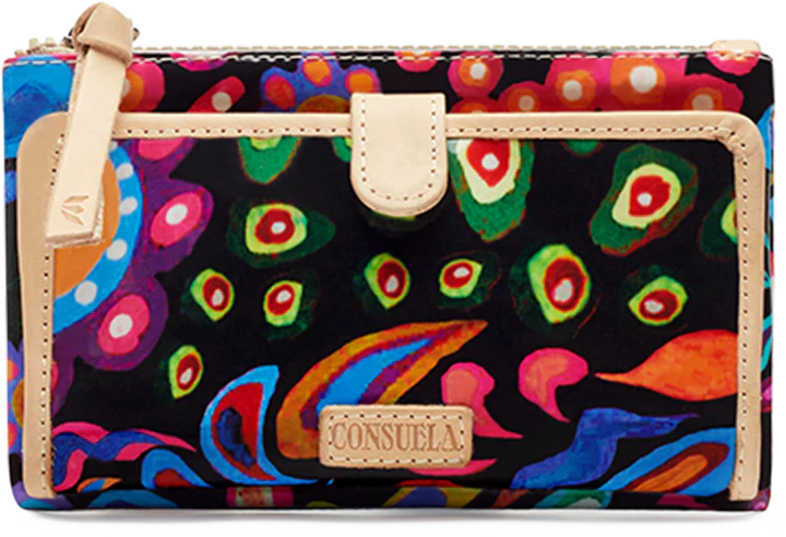 Our Sophie Slim Wallet is compact in size, yet complete with all the compartments you need to stay organized! Our Sophie ConsuelaCloth™ print bifold is secured with a snap tab closure and filled with functional card slots and pockets.
