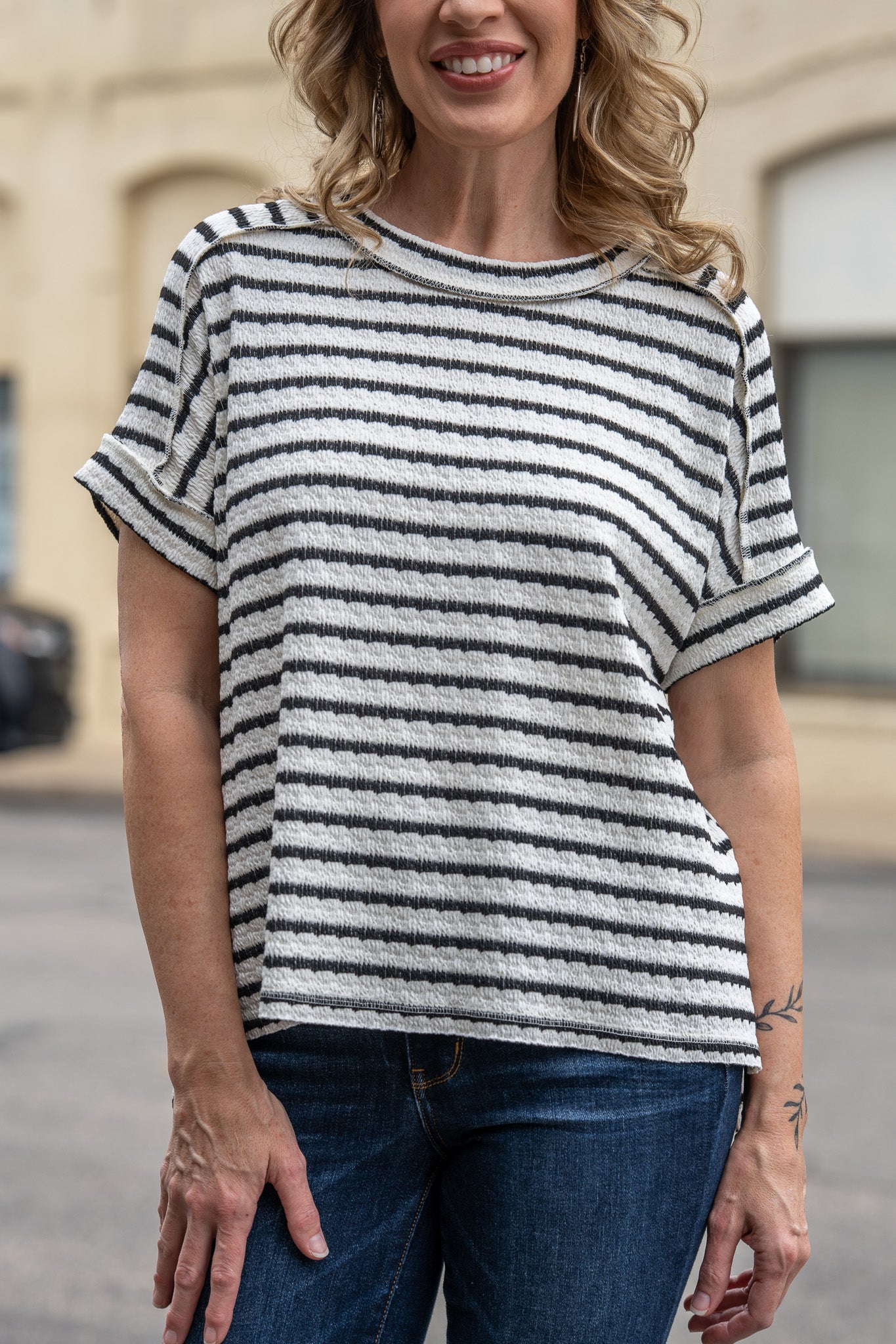 Our Sweetheart Stripe Boxy Tee is relaxed, loose fitting and made for real life.