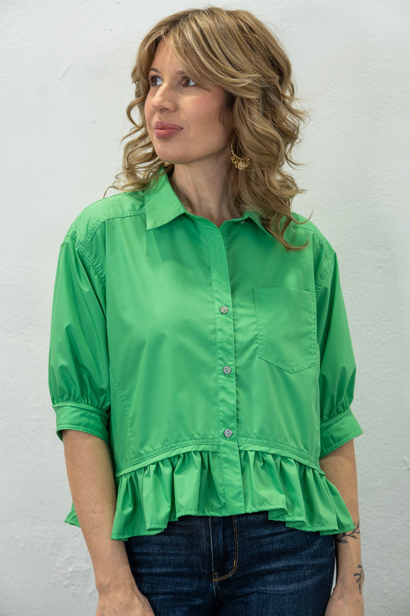 Sylvia Green Button-Down Top