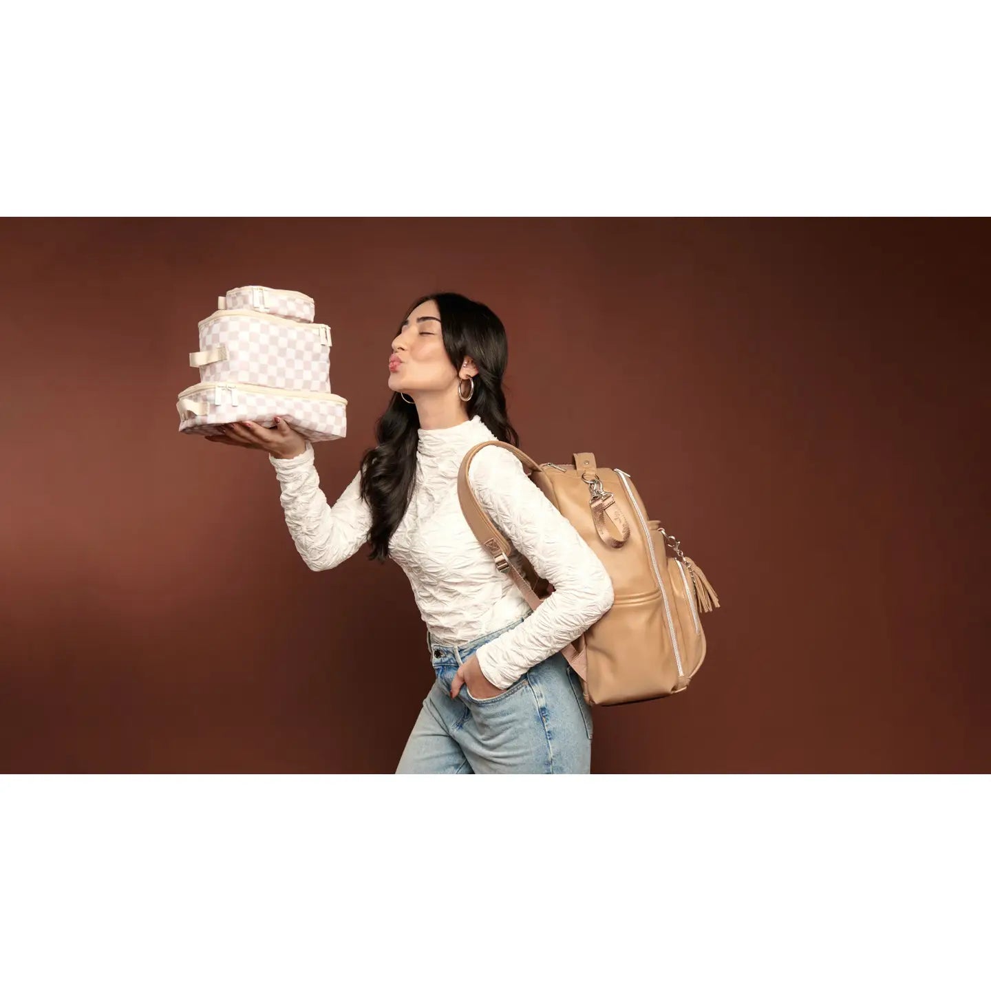 These sets of three packing cubes make it easy to stay organized! Each packing cube features a mesh top panel for easy viewing, dual zippers to make it easy to access your items, and a soft fabric handle to make each bag easy to remove or rearrange within your diaper bag. Best of all, the packing cubes are machine washable! Use them together or individually to remain stylishly organized while on the go!