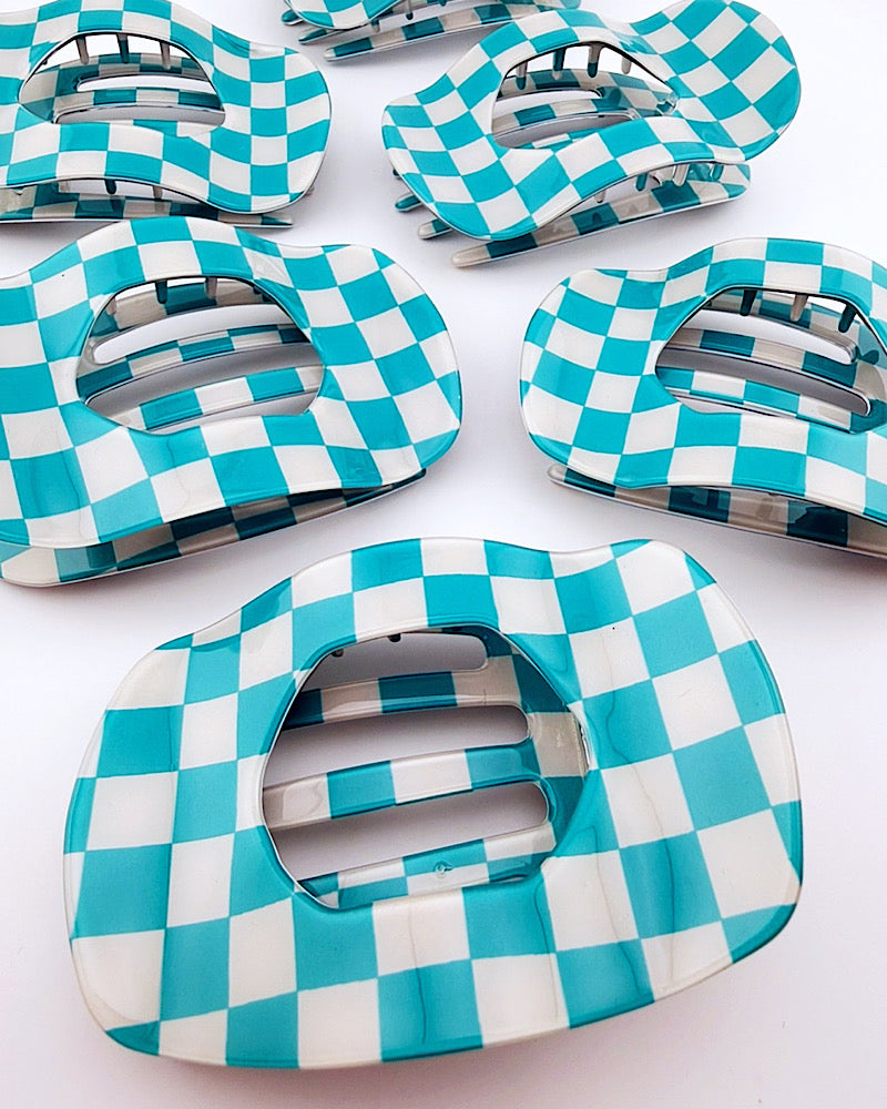 Teal Check Flat Hair Clip