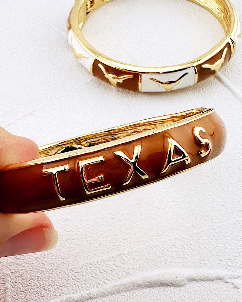 The Texas Longhorns Sculpted Enamel Hinged Bangle adds a fun touch to your fan accessories. This bangle adds an eye-catching element of style while showing off your Longhorns pride.