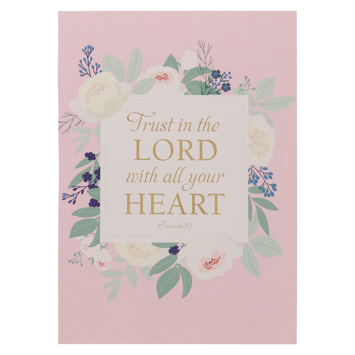 The Trust in the Lord Pink Floral Medium Notebook offers a calming reminder that calls you to surrender and rely on God completely. With its blush pink background and elegant floral design, this notebook is a reminder to trust God even in the small things.