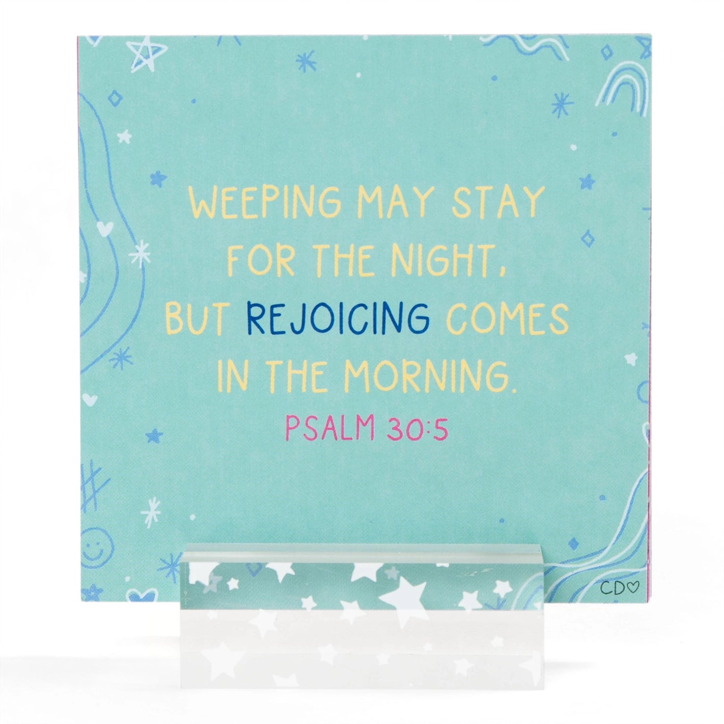 Find daily inspiration and encouragement with our Verses For Hope Card Set. This set includes 12 double-sided cards, each featuring an uplifting Bible verse to inspire hope, faith, and strength. Perfect for personal reflection or sharing a thoughtful message with others, these cards offer a moment of peace whenever you need it. The set also includes an acrylic block stand, making it easy to display your favorite verse on your desk, at home, or in the office. The 3.5x3.5" cards are the perfect size to keep close at hand for daily inspiration.