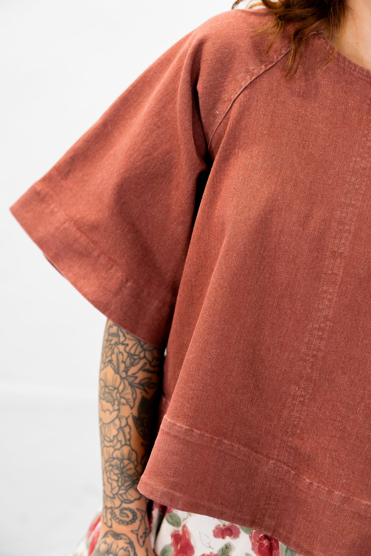 Wide, flare sleeves and a boxy fit.